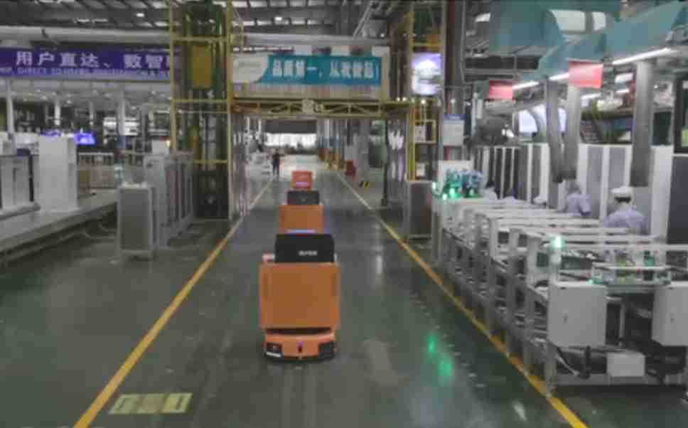 为车载冰箱物流配送打造的智能解决方案,,包含产中物流通过潜伏举升AMR搬运至线边,,产后成品物流智能仓储,,,流程包含产中物流智能齐套入库,,,,线边安灯叫料AMR智能配送至线边,,,成品入库、、、、出库,,,通过无人堆高车机器人,,,,智能仓储管理替代人工作业管理,,,实现更高存储、、、、更高效率、、、、更具柔性化的解决方案。。。。